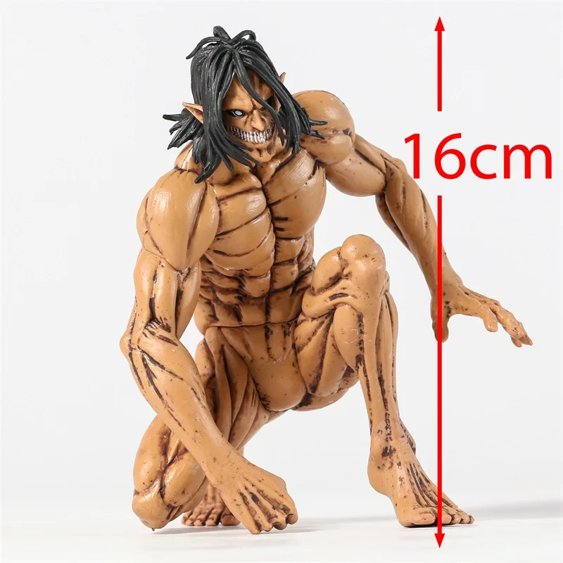 figurine de Titan assaillant d’Eren de l’anime Attack on Titan mesure 14 cm de hauteur et est fabriquée en PVC. Elle représente le célèbre titan en position assise sur le sol, les mains posées sur ses genoux et avec une expression faciale menaçante. Les couleurs de la figurine sont très vives, avec des nuances de chair et de rouge pour les parties les plus sombres. Les détails sont soignés, avec une attention particulière portée aux formes et aux textures des différentes parties du corps du titan.