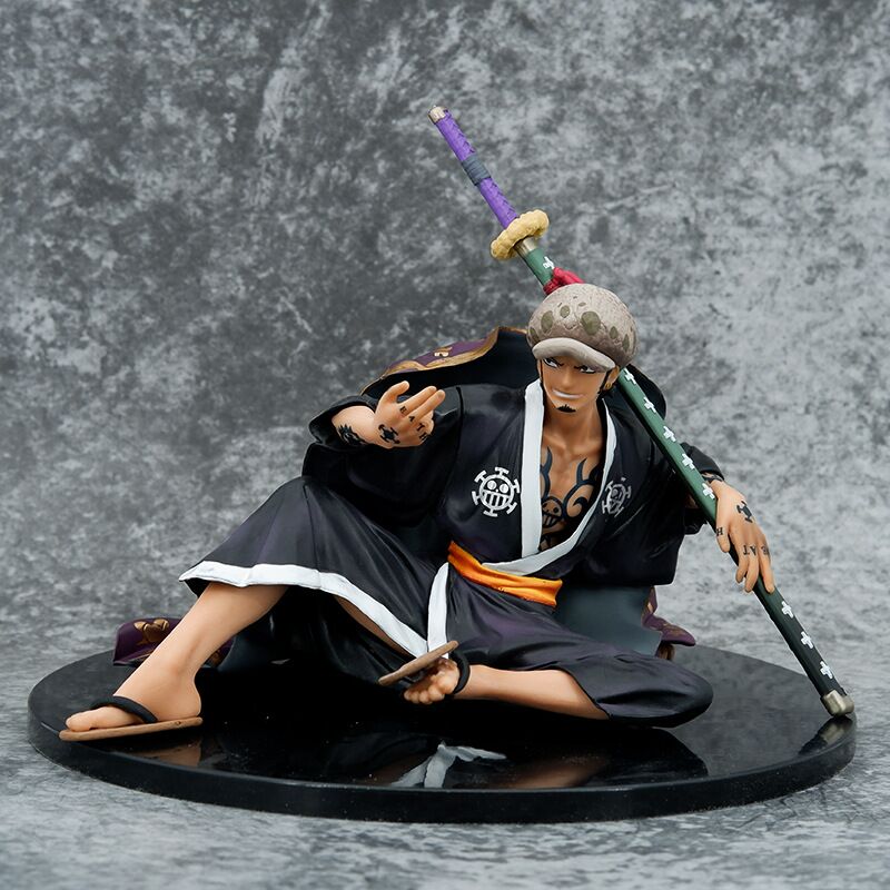 Figurine One Piece Trafalgar Wano , Trafalgar D Water Law de la série One Piece représente le personnage assis dans une pose dynamique, tenant son épée dans la main droite. Il est habillé dans un kimono traditionnel de Wano Country Samurai, avec des motifs détaillés et une finition soignée pour reproduire fidèlement le design de l’anime. Les articulations mobiles en PVC permettent de changer la pose de la figurine selon vos envies et de créer des scènes d’action plus dynamiques.
